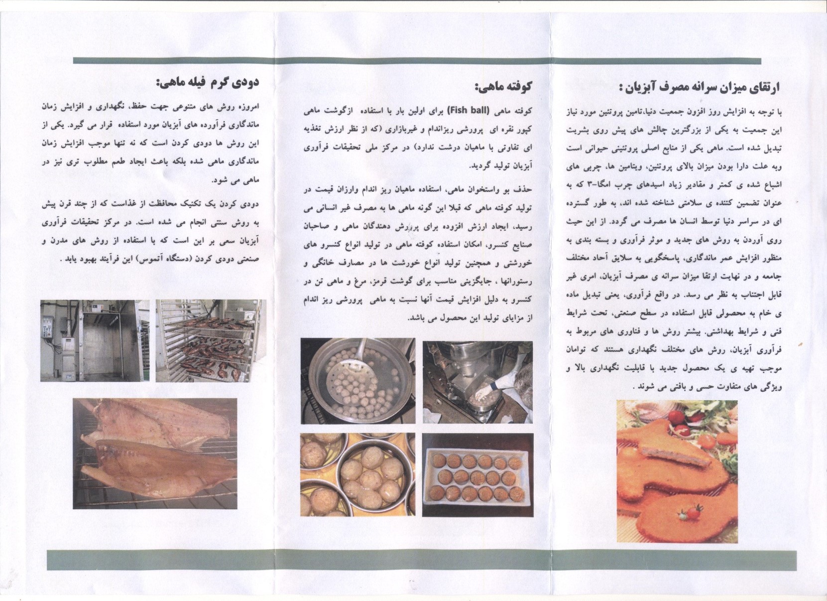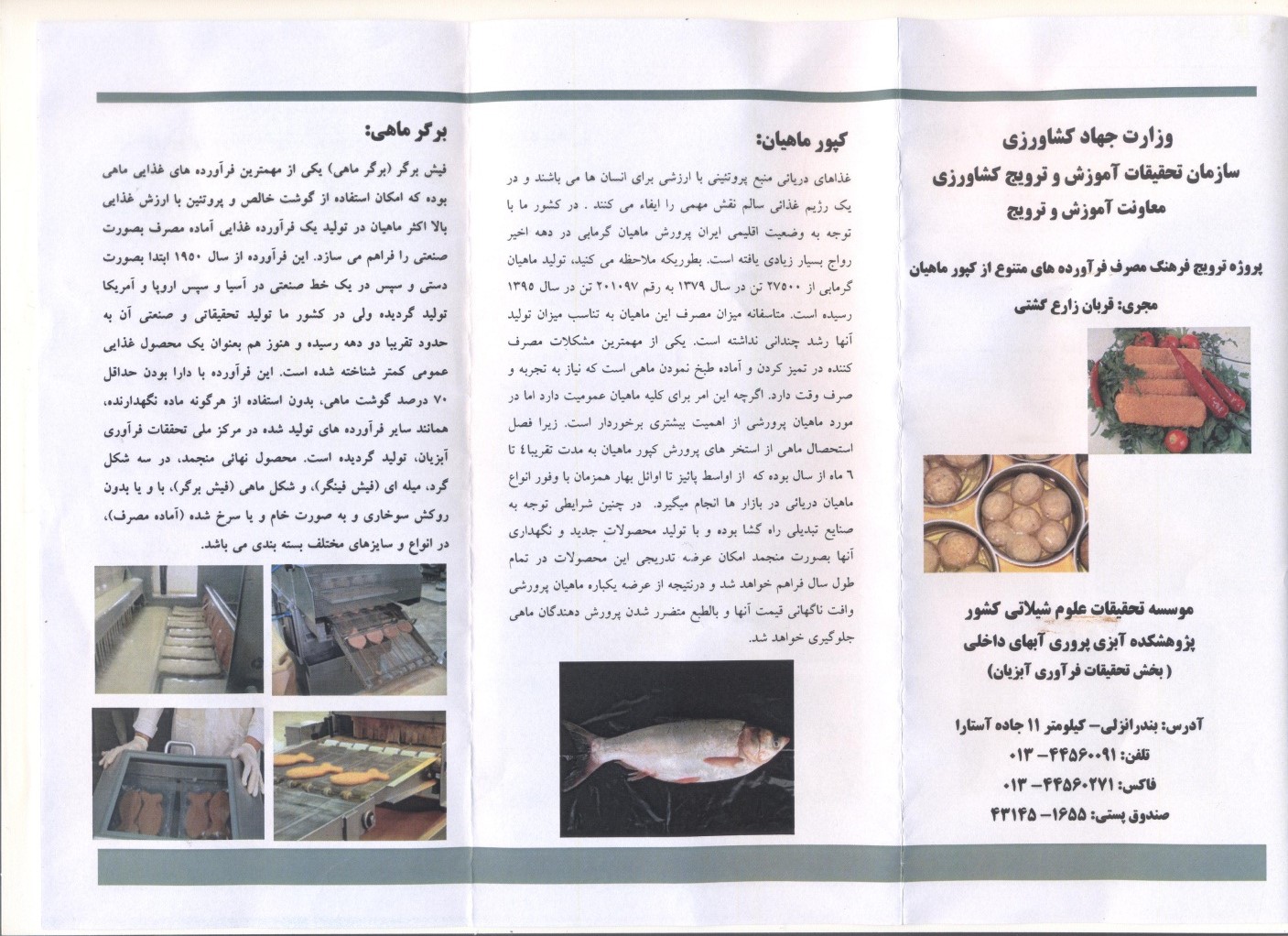 پژوهشکده آبزي پروري آبهاي داخلي بندر انزلي - یک شنبه شانزدهم دی 1397 تهیه بروشور پروژه ترویج فرهنگ مصرف فرآورده های متنوع از کپورماهیان تهیه بروشور پروژه ترویج فرهنگ مصرف فرآورده های متنوع از کپورماهیان