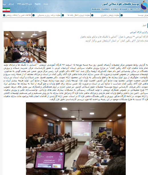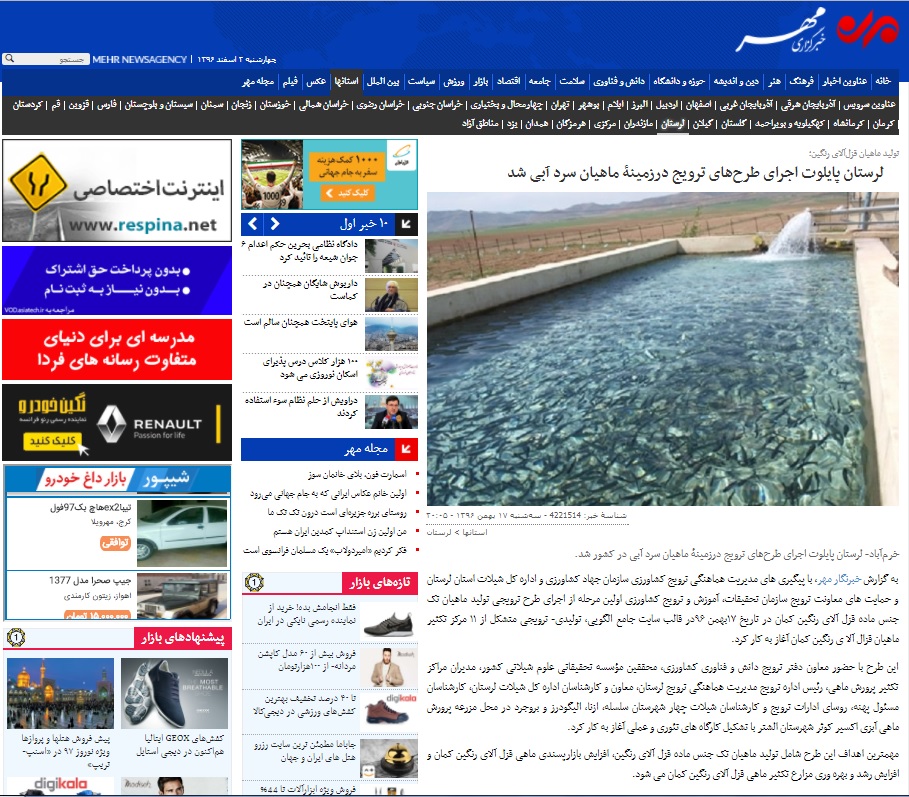 سایت پرتال توسعه پارس - دوشنبه بیست و یکم اسفند 1396 انعکاس اخبار طرح ترویجی تک جنس ماهی قزل آلا در رسانه ها انعکاس اخبار طرح ترویجی تک جنس ماهی قزل آلا در رسانه ها
