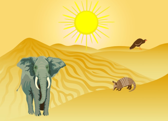 برخی از زیستگاه ها گرمای شدیدی را تجربه می کنند. این در مورد بسیاری از بیابان ها و خیلی از کشورهای آفریقایی صدق می کند. بسیاری از حیوانات نمی توانند در چنین گرمای شدید و موج گرمایی که همراه آن است زنده بمانند. پوست ضخیم فیل ها به آنها کمک می کند تا با آب و هوای گرم سازگار شوند.