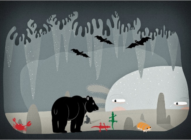 Caves are home to many animals. These animals are adapted to life in the dark and many cannot see at all. Some animals cannot survive outside of the cave but others live in the cave but venture out of the cave also. There are three different levels of the cave: the entrance zone, the twilight zone and the dark zone.