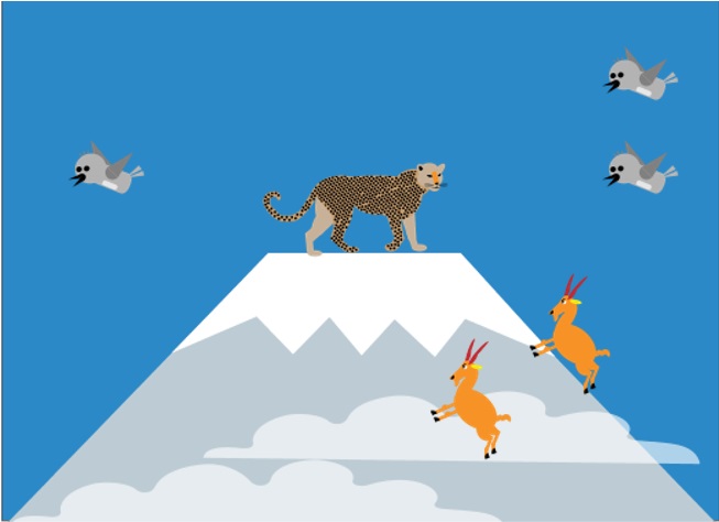 در کوه، آب و هوا و موجوداتی که در آنجا زندگی می کنند اغلب با بالا رفتن ارتفاع تغییر می کنند. با سرد تر شدن درجه حرارت، گونه های درختی تغییر می کنند و سپس در نهایت همگی ناپدید می شوند. در بالای قله معمولا چیزی جز برف و یخ نیست.
