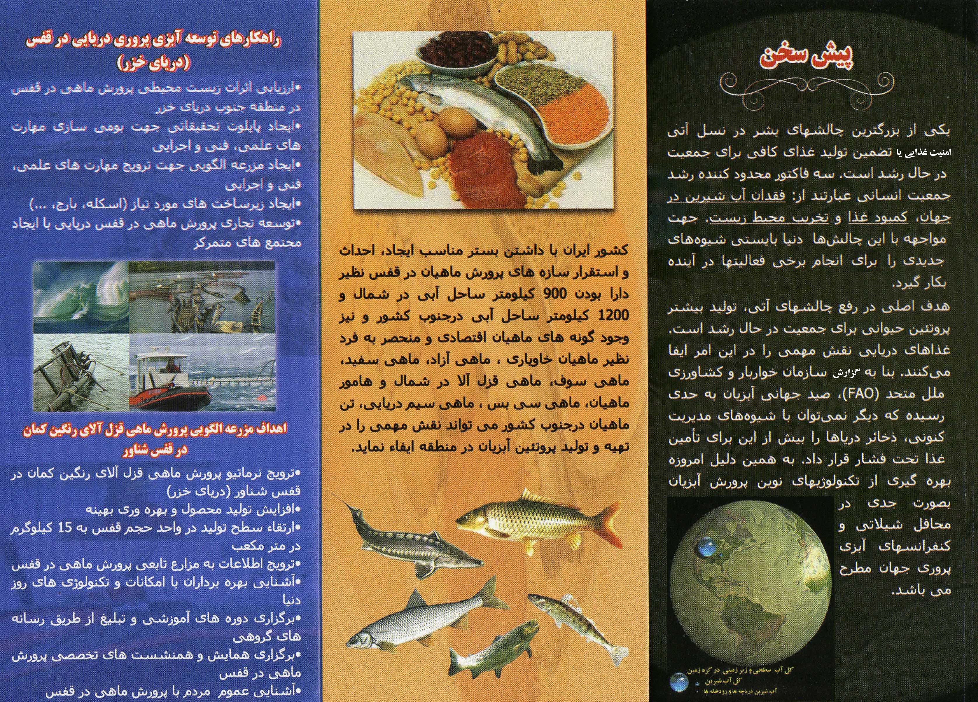 پژوهشکده اکولوژي آبزيان درياي خزر - شنبه یکم اردیبهشت 1397 بروشور طرح ترویج : مزرعه الگویی پرورش ماهی در قفس بروشور طرح ترویج : مزرعه الگویی پرورش ماهی در قفس