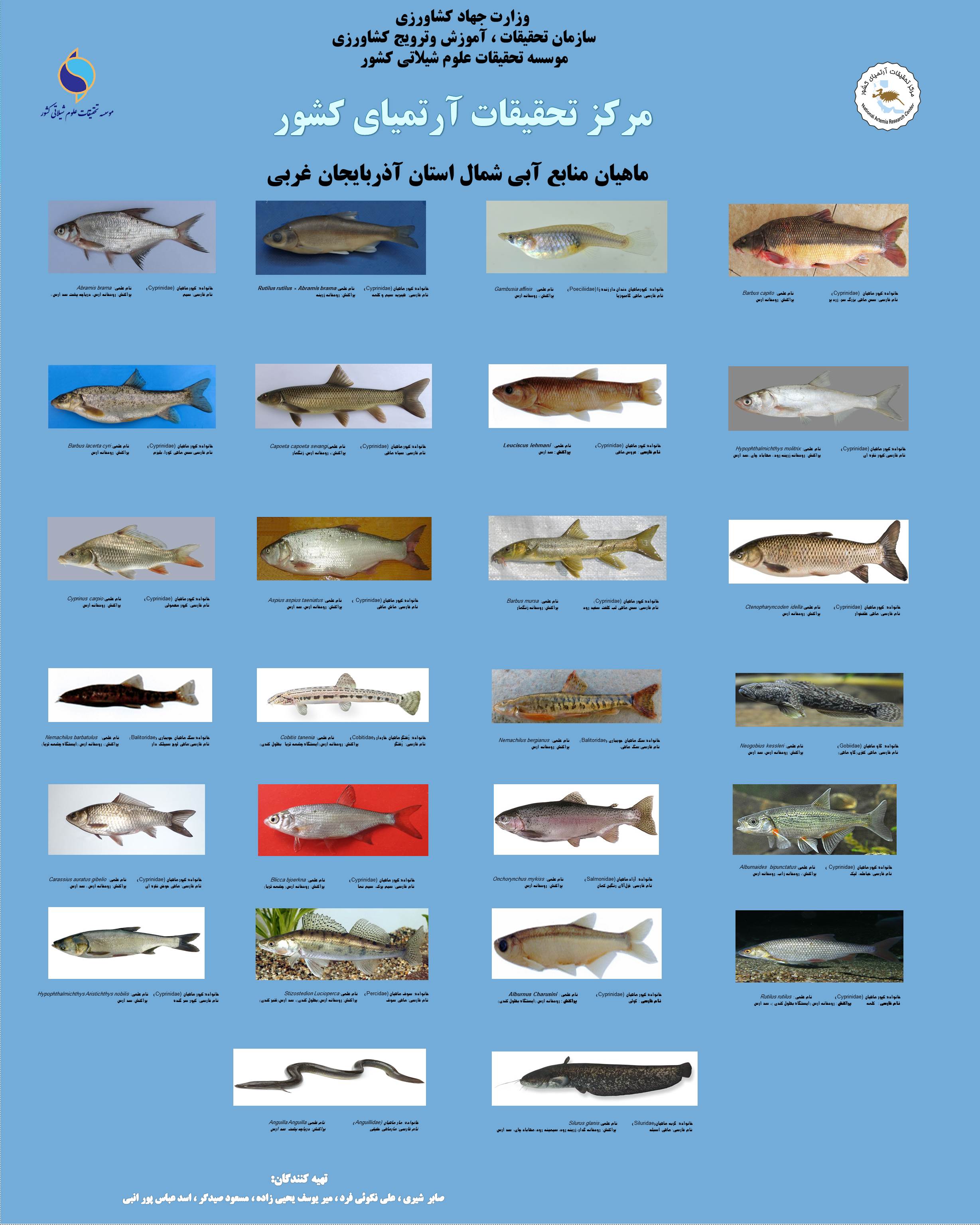مرکز تحقيقات آرتمياي کشور - چهارشنبه بیست و چهارم خرداد 1402 پوستر ماهیان منابع آبی شمال استان آذربایجان غربی پوستر ماهیان منابع آبی شمال استان آذربایجان غربی